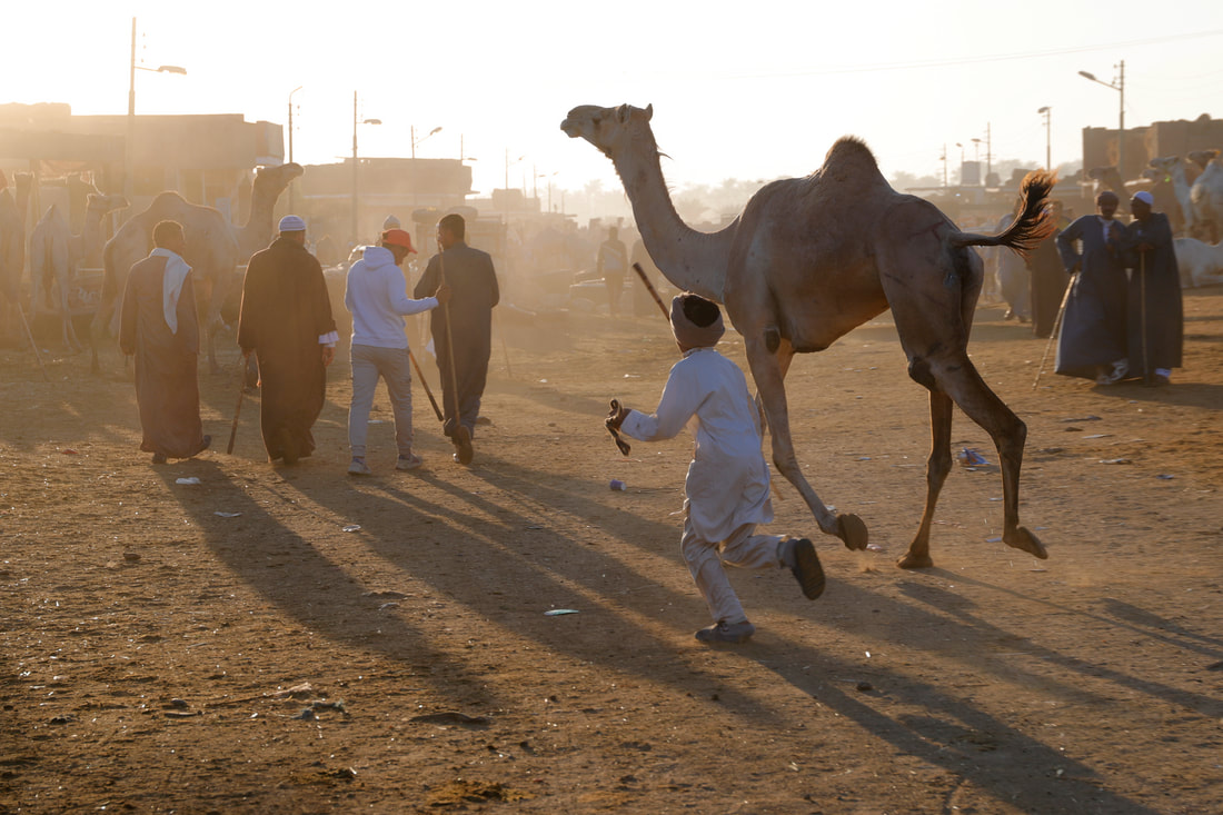 Ein erstes Licht am Horizont Dieses Kamel riecht in den frühen Morgenstunden die Freiheit, wenn auch nur für kurze Dauer. Der Junge hat längstens gelernt, wie ein weglaufendes Kamel zu stoppen ist. Als Zuschauer muss man immer achtsam sein, um nicht überrannt zu werden. |