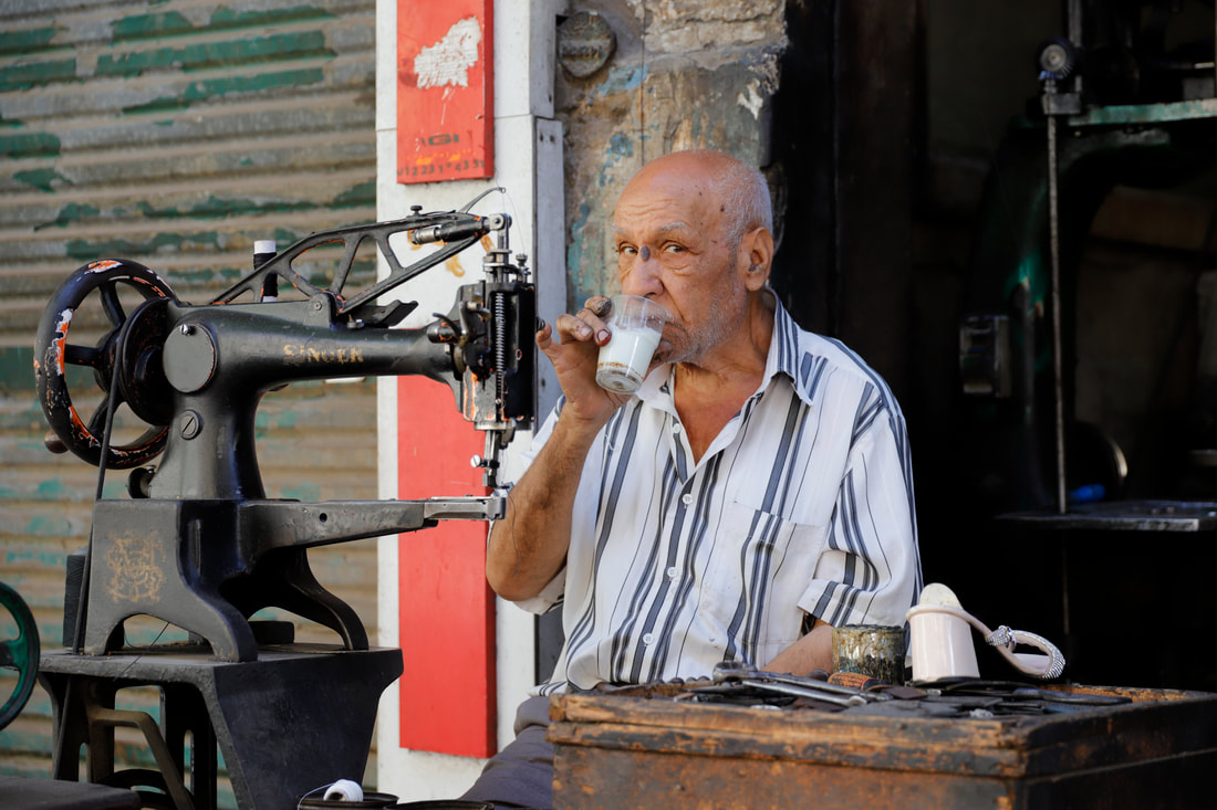 Das wackere Schneiderlein Märkte sind in arabischen Ländern nach Themen geordnet. Im Textilmarkt findet man als Einheimischer eine unvorstellbare Vielfalt an Rohstoffen und verarbeiteten Kunstwerken, Reparaturservice inklusive. |